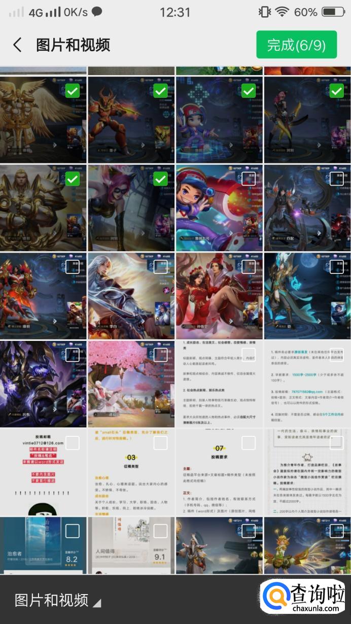 这时就可以进入了我们的相册,在这里要找好需要编辑拼接的图片,勾选完成后点击右上方的绿色“完成”按钮。