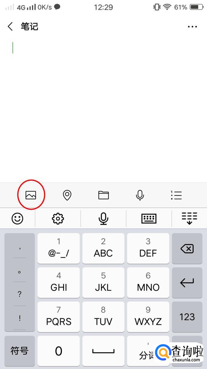 这时会转到笔记页面,但是里面什么都没有,所以我们要点击下方的图片图标进行内容添加。