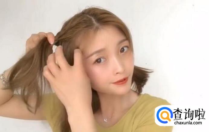 将头发分左右两股,分缝的位置自己选择,但是尽量保证发量一致。