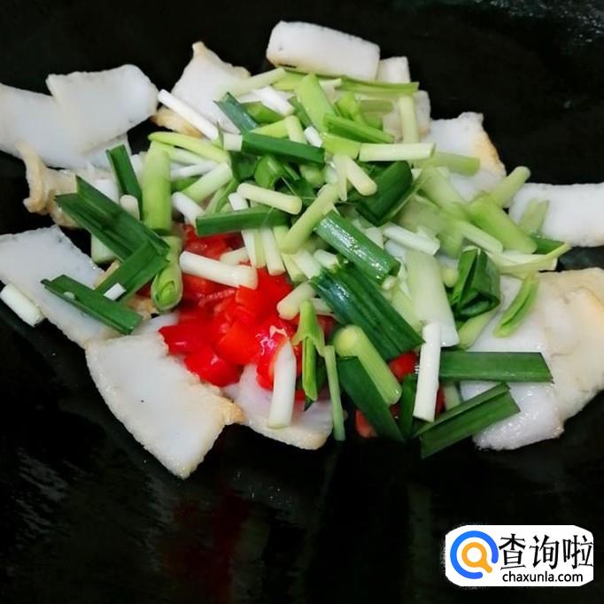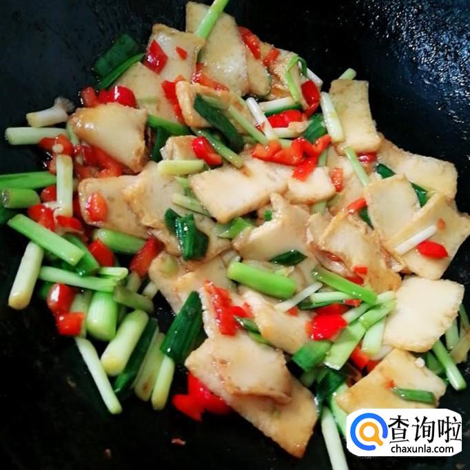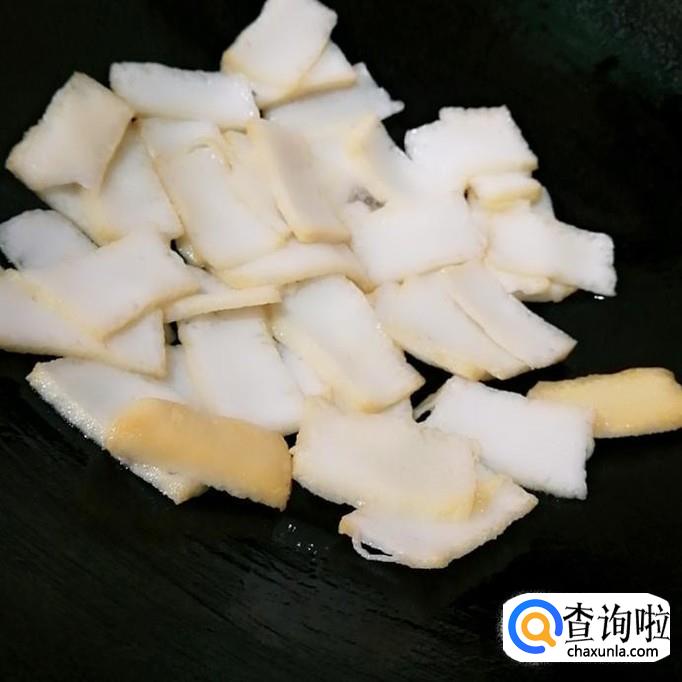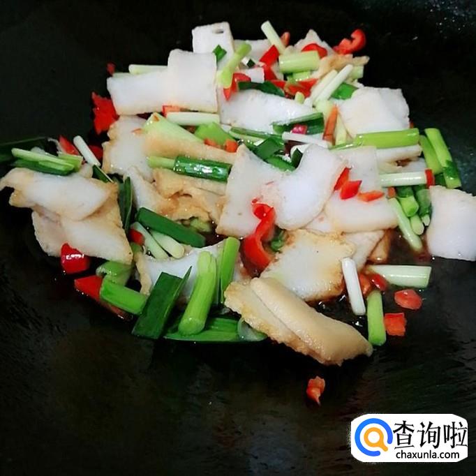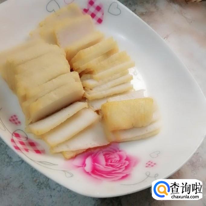先把鱼豆腐切成片,切薄一点会更好。炒起来容易熟。