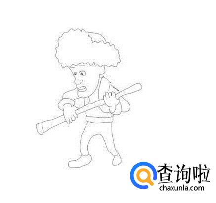 最后在身体的下面画出光头强的两条腿,然后在腿上画出光头强的鞋子,这样简笔画光头强就画好了,如图所示: