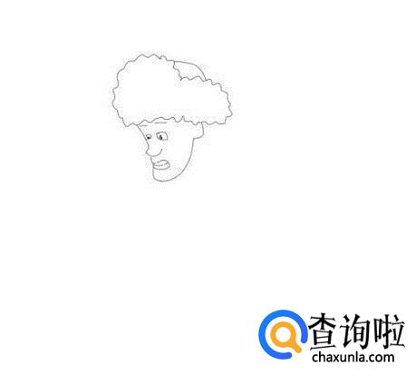 在帽子的下面画出光头强的面部,然后在面部上画出光头强的眼睛,鼻子和嘴巴,如图所示: