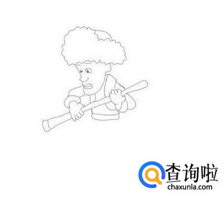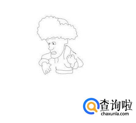 在画好头部下面画出光头强的身体,然后在身体上画出光头强的两只胳膊及手部,如图所示: