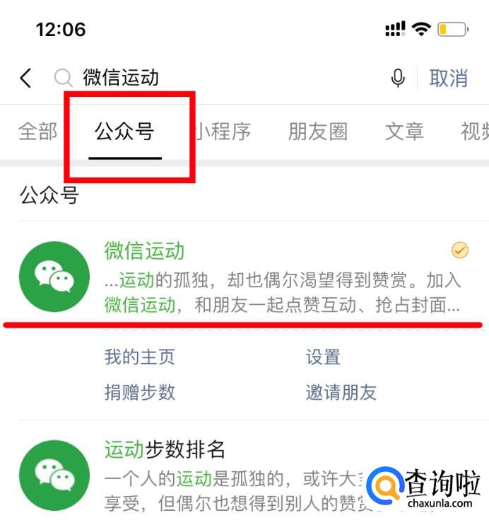 选择【公众号】-【微信运动】