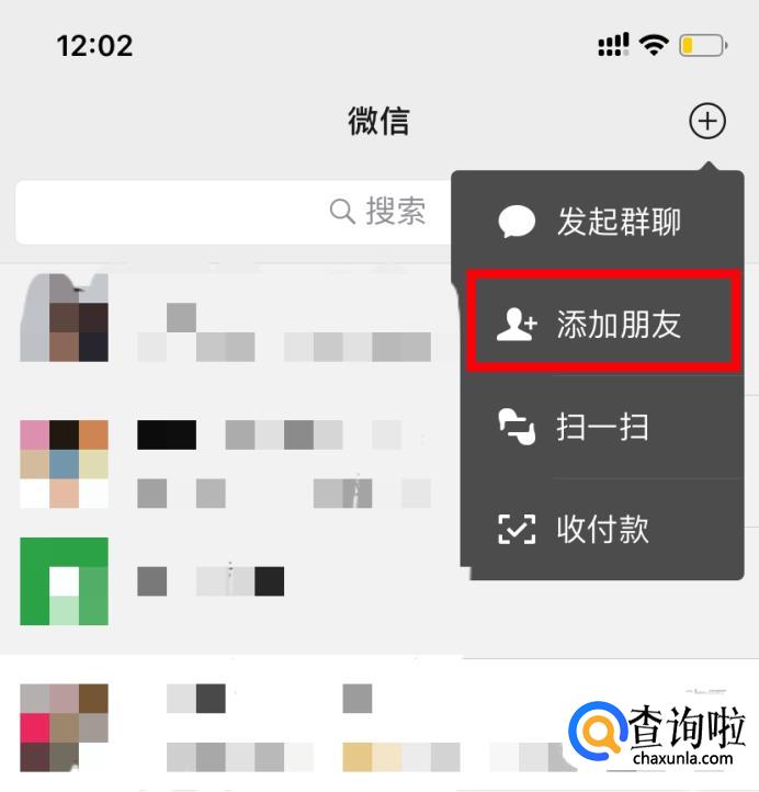 打开【微信】-右上角【+】-【添加朋友】。