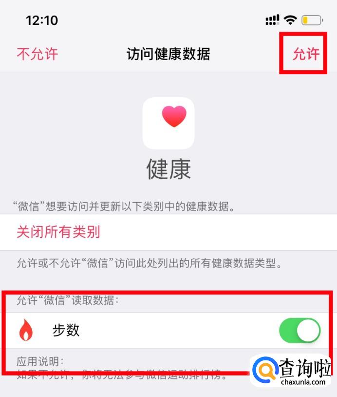 打开步数开关,点击右上角【允许】就设置好了。