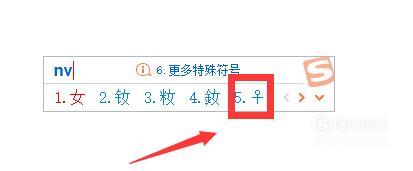 同理,直接输入女的拼音“nv”,即可打出♀符号,如下图所示。