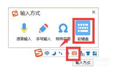 点击搜狗输入法上的键盘图标后,点击“软键盘”。