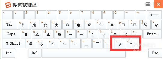 在特殊符号的软键盘中,可以直接点击♂♀符号输入了。