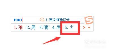 直接输入男的拼音“nan”,即可打出♂符号,如下图所示。