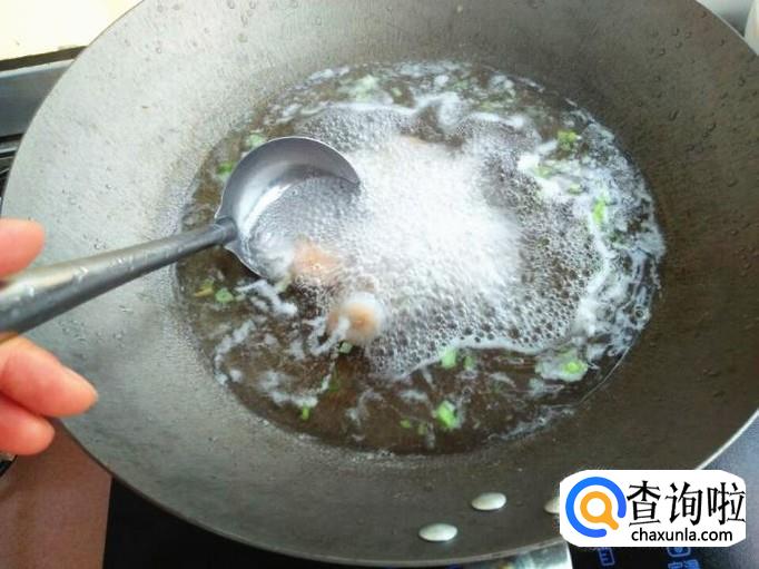 不用放油,直接在锅里加入适当清水,然后再加上一点葱段和姜丝,也不用加任何调料,然后烧开水。