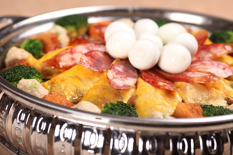 一品锅是一层层摞起来煮的。一品锅是一种火锅,在火锅里,锅底铺上干笋子,第二层铺上块肉,第三层是白豆腐或油炸豆腐,第四层是肉丸,第五层盖上粉丝,缀上菠菜或金针菜,加上调料和适量的水,然后用文火煨熟即成。此菜乡土风味浓,味厚而鲜,诱人食欲。