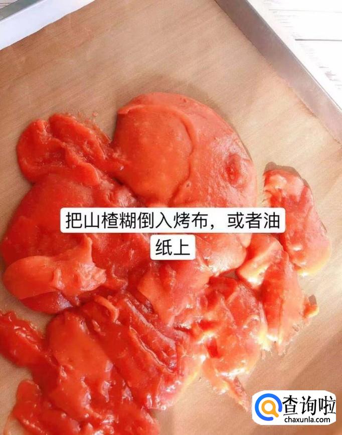 接着把处理好的山楂糊放到烤箱,上下100°火烤一到两个小时就可以了。小贴士:1.如果大家没有烤箱也可以用烘干机,如果气候条件允许,也可以用阳光暴晒3天左右也是可以的;2.如果大家是用阳光晒干山楂的,小编建议大家最好做好各种食品卫生安全措施,避免山楂被苍蝇叮咬。
