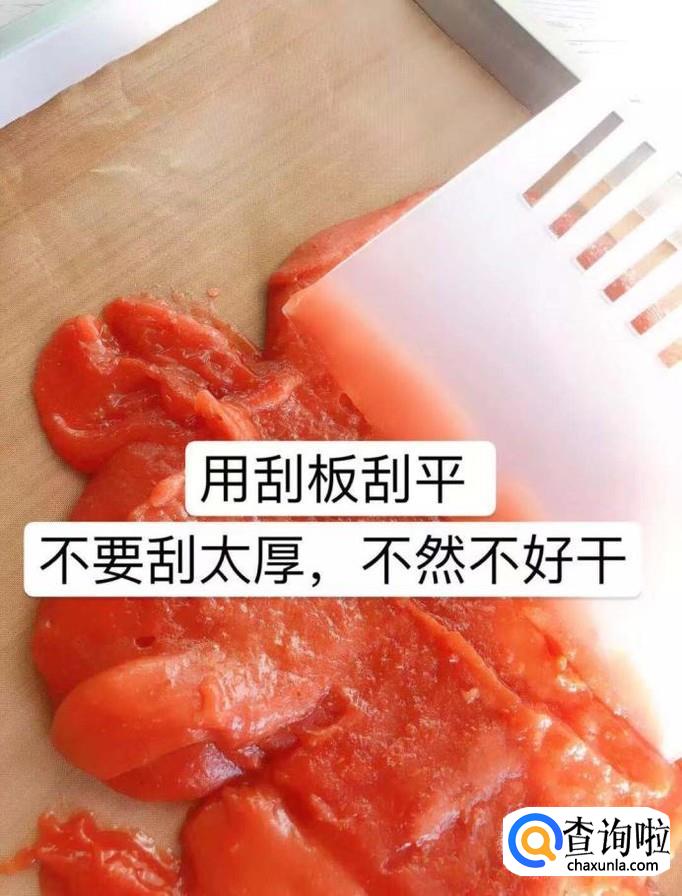 然后用刮板把山楂糊刮平,如下图所示。小贴士:大家在做这一步的时候,一定要控制好山楂糊的厚度,因为如果山楂糊的厚度太厚是很难干的,这一点大家一定要注意。