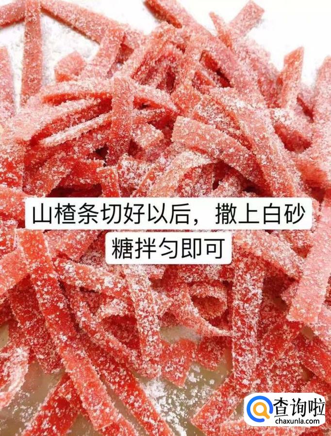 然后把山楂条切成条,撒上白砂糖,搅拌均匀就可以了。如果大家喜欢吃山楂卷,只要把山楂切成片就可以了。