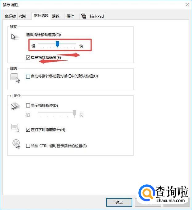 弹出的界面,我们点击指针选项,然后我们根据我们的需求调节指针的速度,这个就是灵敏度的设置了;