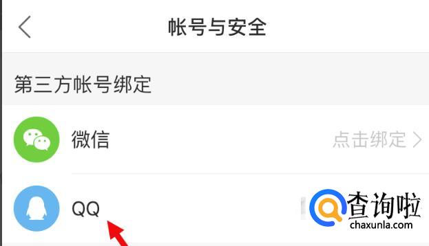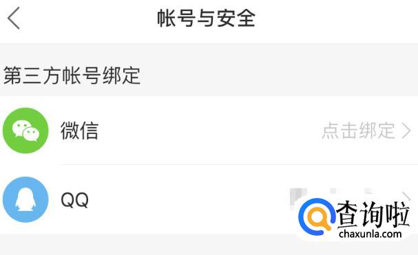这样我们就可以看到我们第三方绑定的账号了,有微信、QQ。点击一下微信。