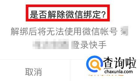 这时会弹出一个提示框,点击解除绑定,解除之后微信就无法登陆快手了。