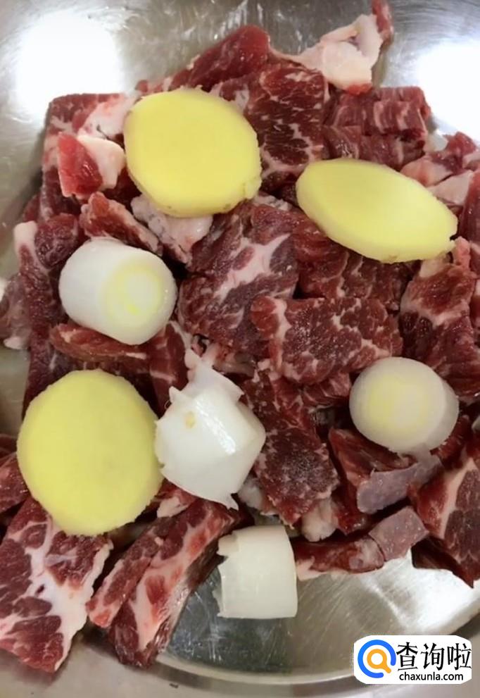 首先我们将牛肉清洗干净,切成厚片,放入一个盆中