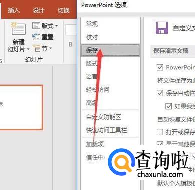 然后选择最后的选项,这样就能直接对PPT的保存进行设置了,直接点击就行了。