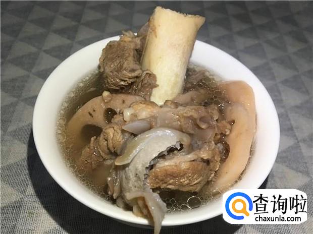 大概炖一个半小时,可以闻到浓香的莲藕味道,骨头也炖软了,加入适量的盐,搅拌均匀,就可以喝上浓浓的莲藕骨头汤了,汤很清甜,喝了还想喝。