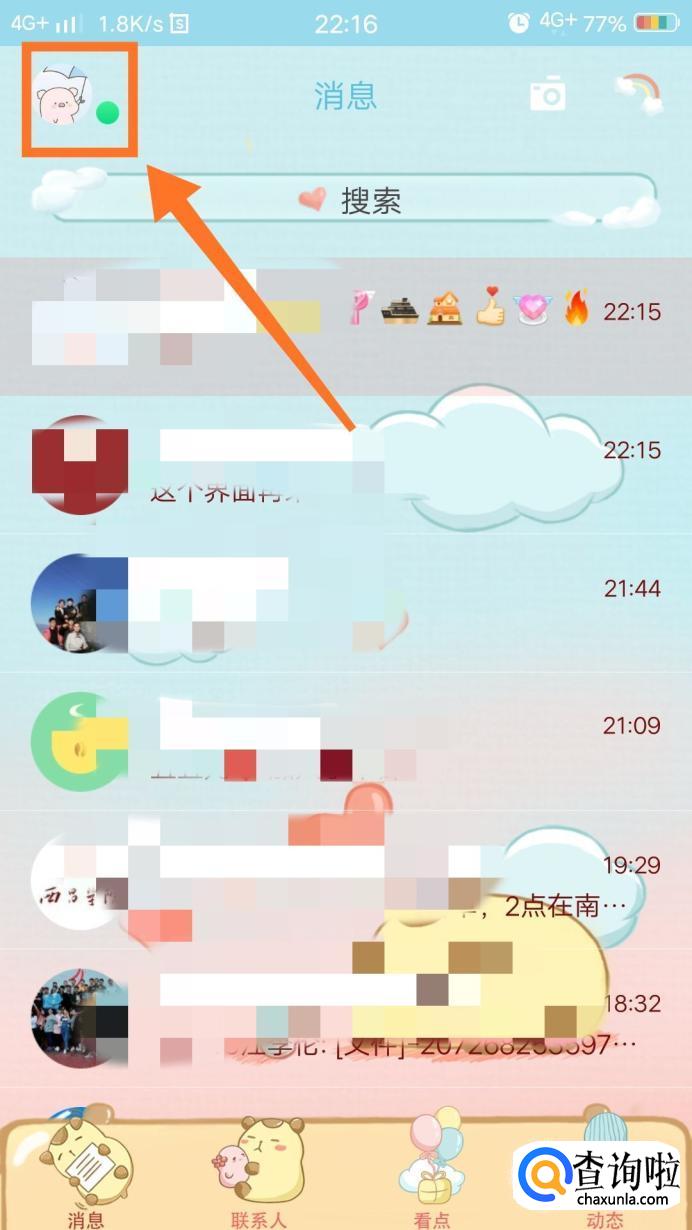 接下来我们输入QQ的账号和密码,进入QQ主界面,点击左上角的【QQ头像】,进入QQ的菜单栏。