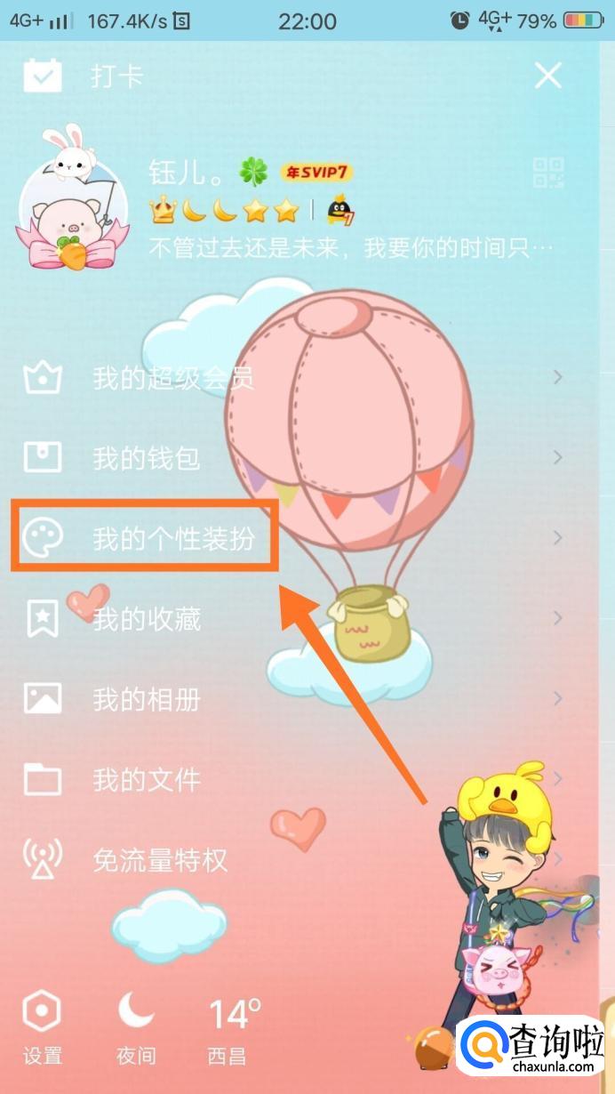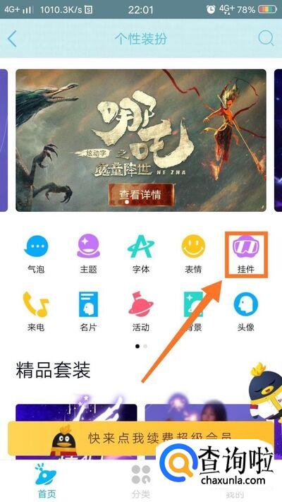进入【我的个性装扮】后,我们选择该界面的【挂件】。