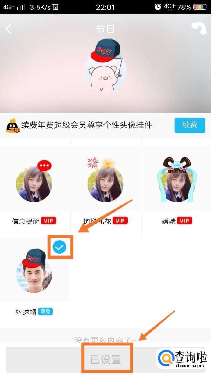 当头像上面显示【√】并且下方显示【已设置】时,说明我们已经设置好QQ头像挂件了。