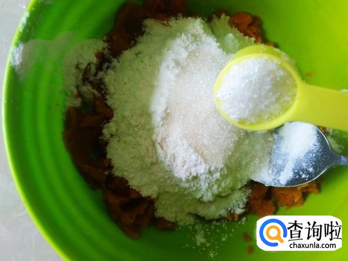 南瓜200克,面粉50克,奶粉30克,白糖适量。