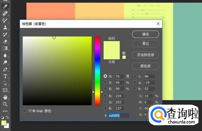 双击前景色,会出现如图所示的拾色器面板,上面有我们所选区颜色的所有信息,包括RGB值和CMYK值。