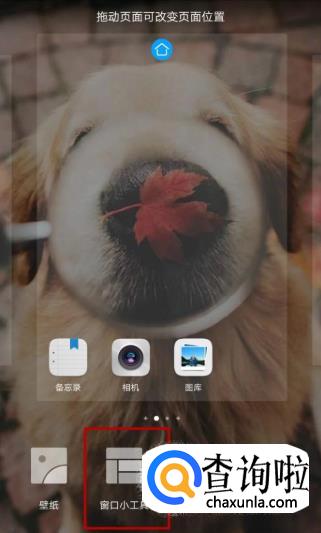长按空白桌面之后,会出现工具栏,点击窗口小工具。