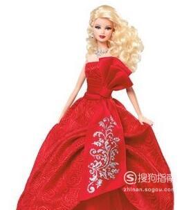搭配大红色礼服的芭比娃娃选择的是一款黄色的长卷发造型,偏分设计的长发从耳朵上方就开始对发丝做了有层次感的烫发处理,这样的烫发造型具有很好的修颜作用,很有女神范的造型。