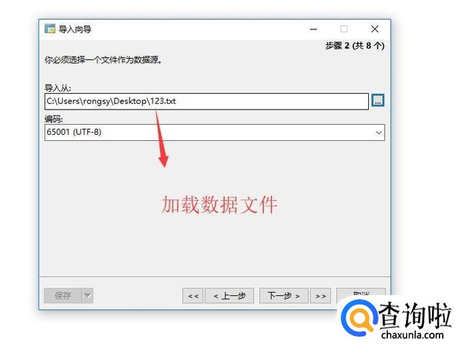然后会弹出导入向导界面,将刚才创建的txt数据文件加载进来,如下图所示