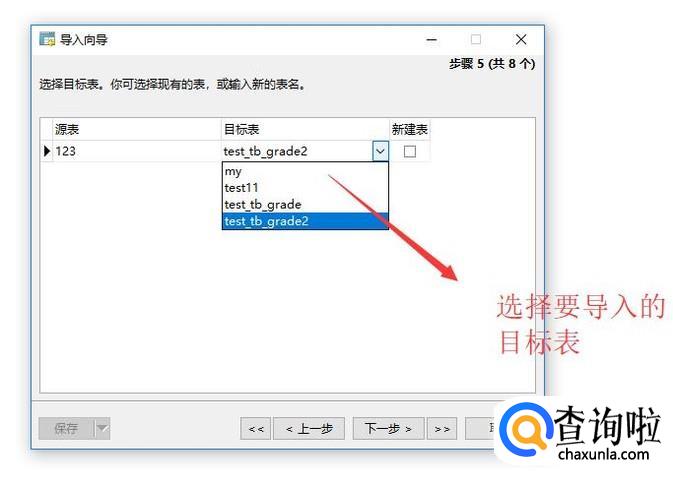 接着会列出源表和目标表的选项,我们需要选择一下目标表,如下图所示