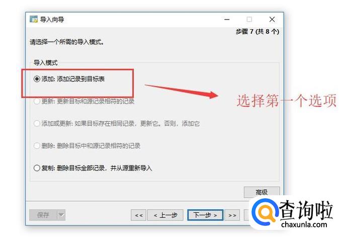 然后导入模式这里选择第一项即可,选择完直接点击下一步,如下图所示