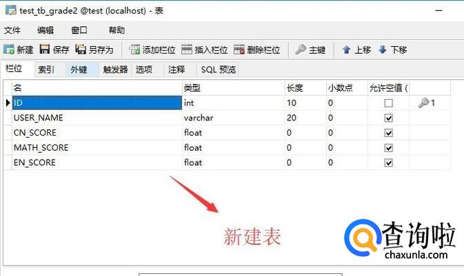 首先我们打开Navicat软件,新建一个数据表,如下图所示,字段这里没有要求,大家可以随意创建