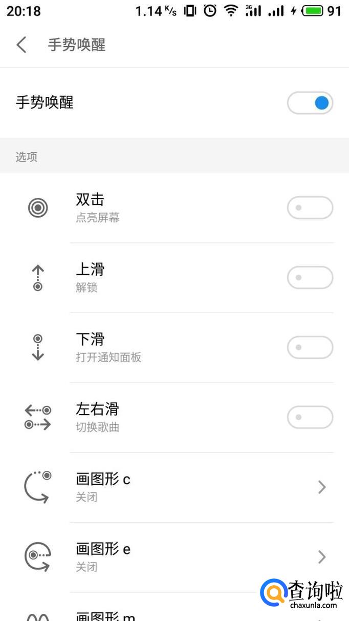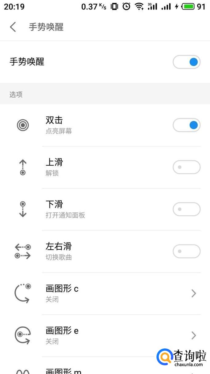 进入手势唤醒界面,在下方选项中将“双击”右侧滑块开启。