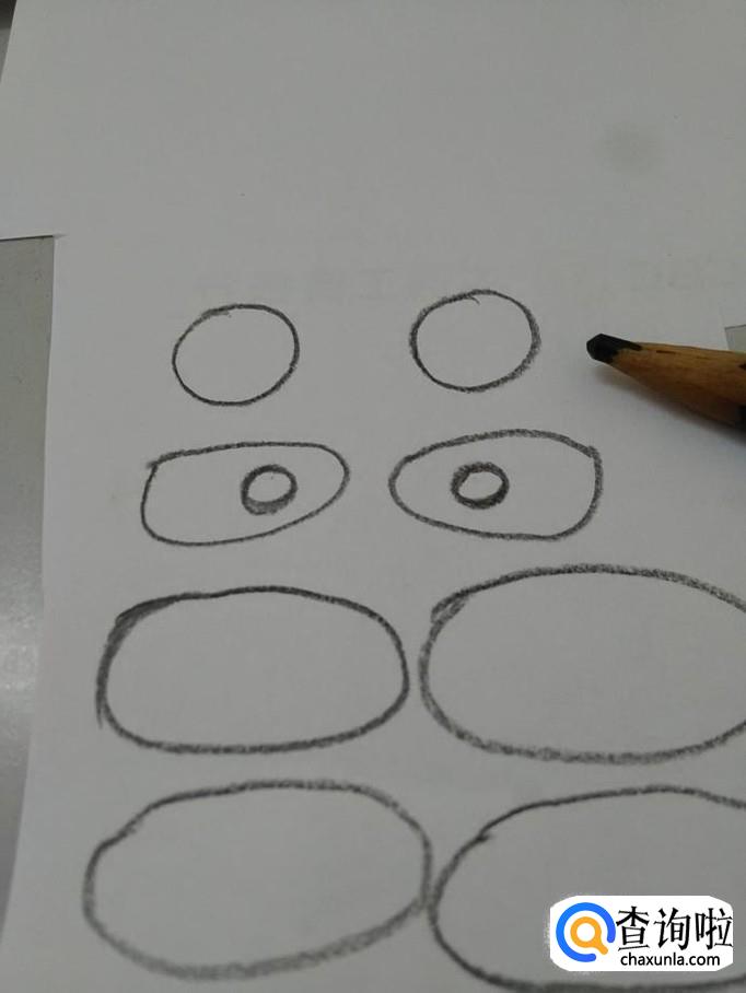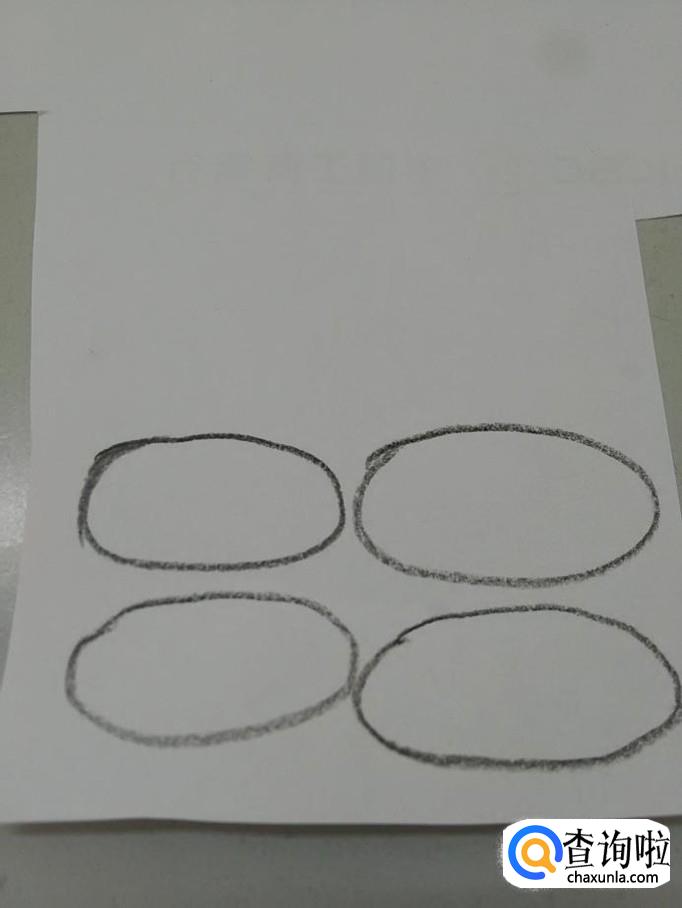 先用黑色彩笔在纸上画四个椭圆形,表示熊猫的四肢。