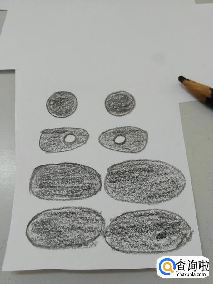 再用黑笔画两个圆形,表示熊猫的耳朵。