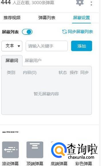 紧接着,视频的右边会出现几个设置选项,我们点击屏蔽设置。
