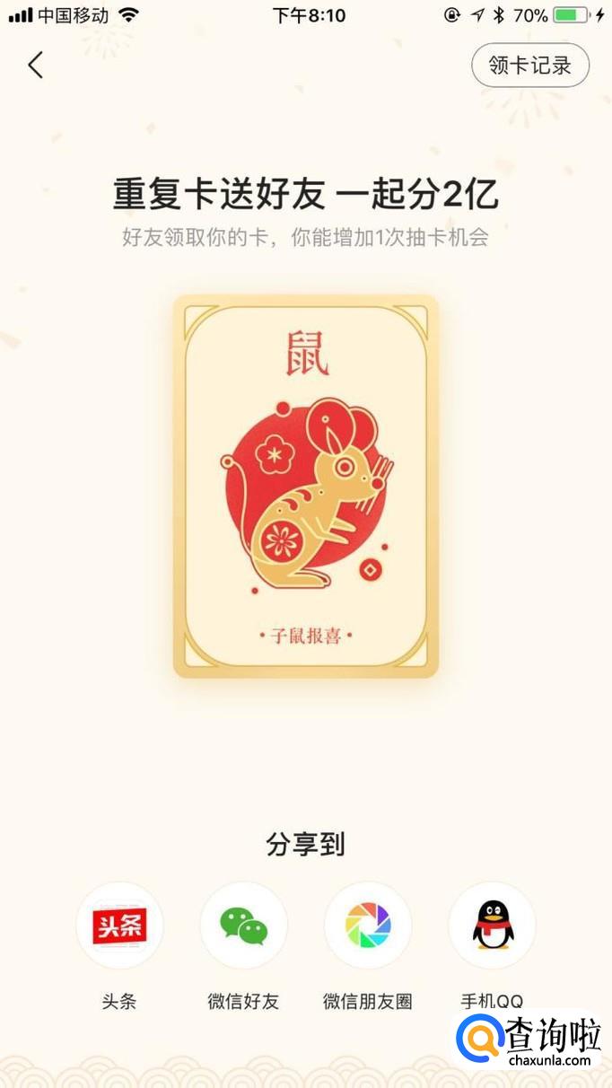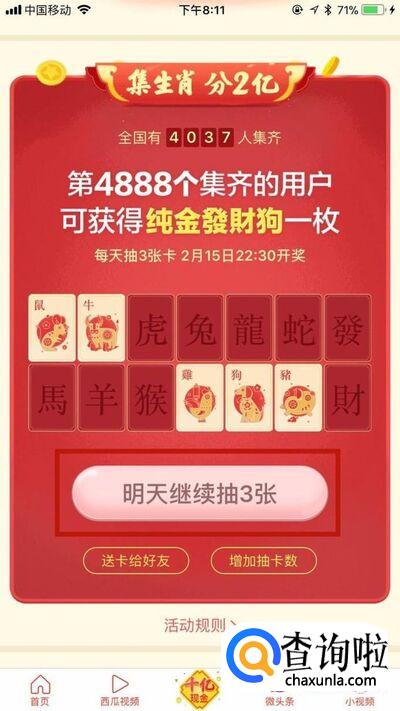 这样你就可以参加收集“发财中国年”活动中的生肖卡活动了。