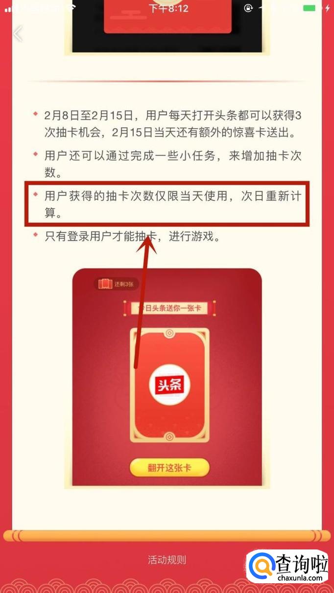 另外还要注意的是当天获得的抽奖机会,只能当天使用,第二天清零。