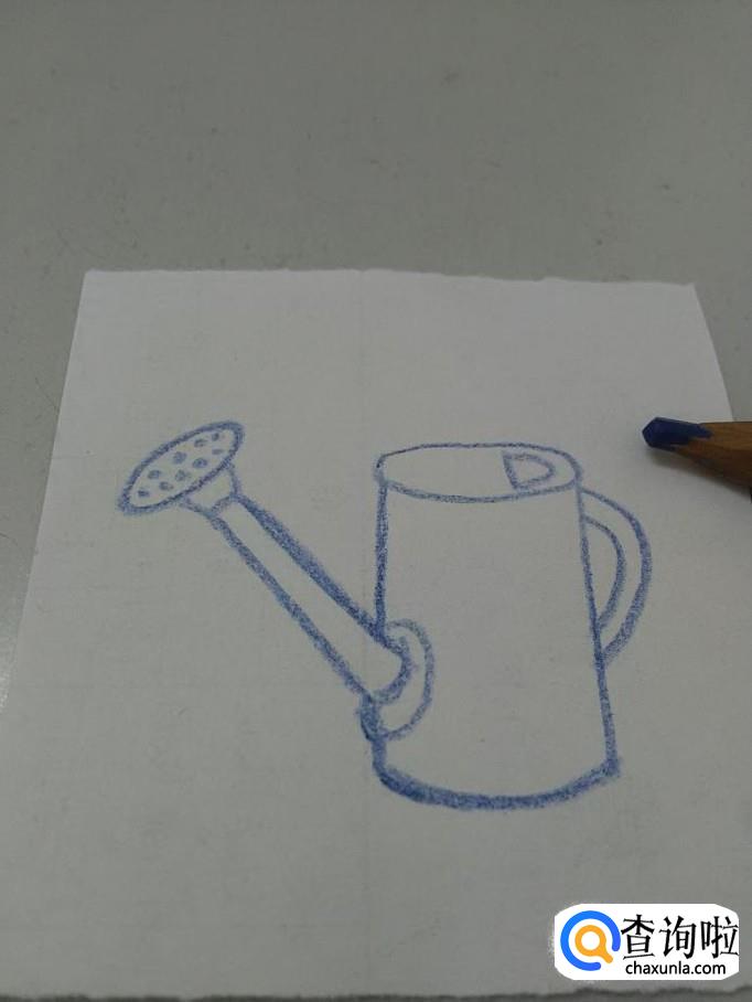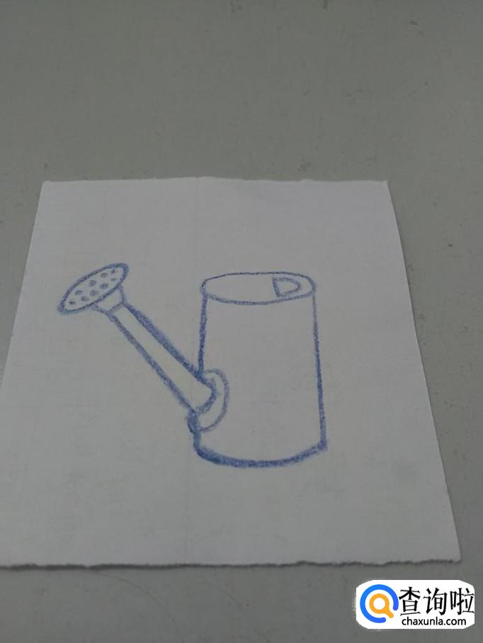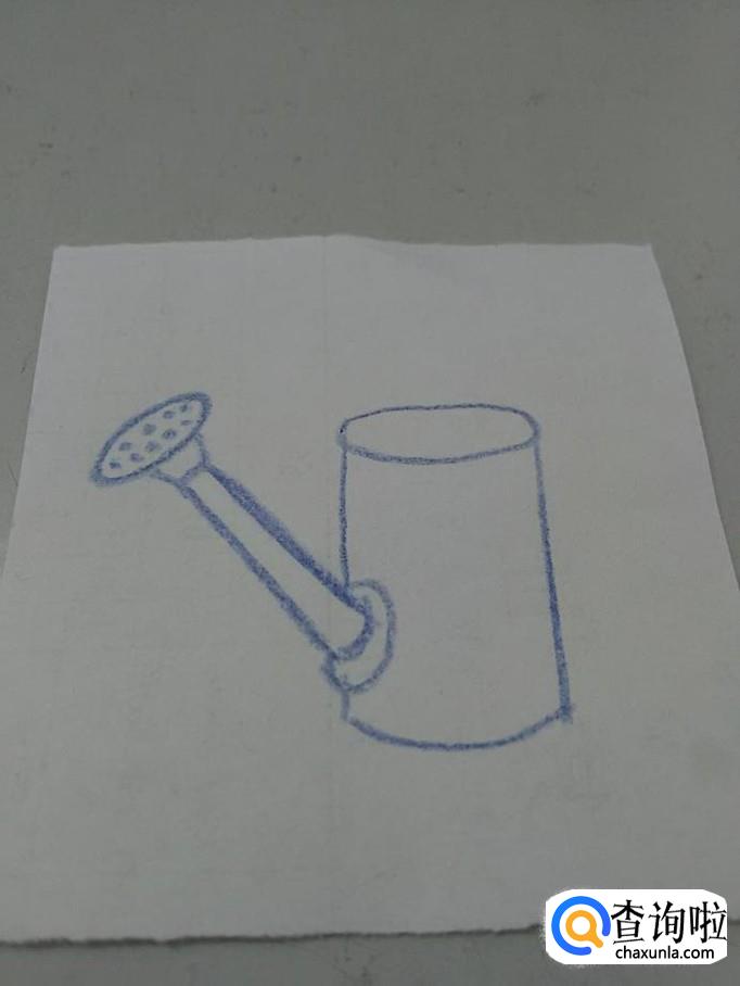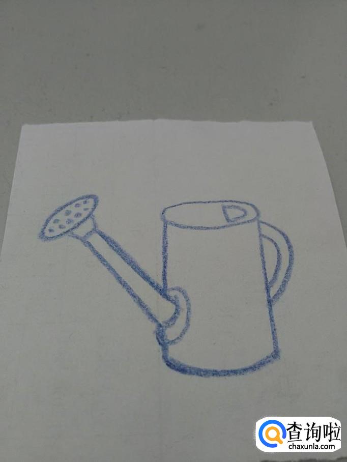在喷壶的右侧画两条弧线,表示壶把儿,喷壶就画完了。
