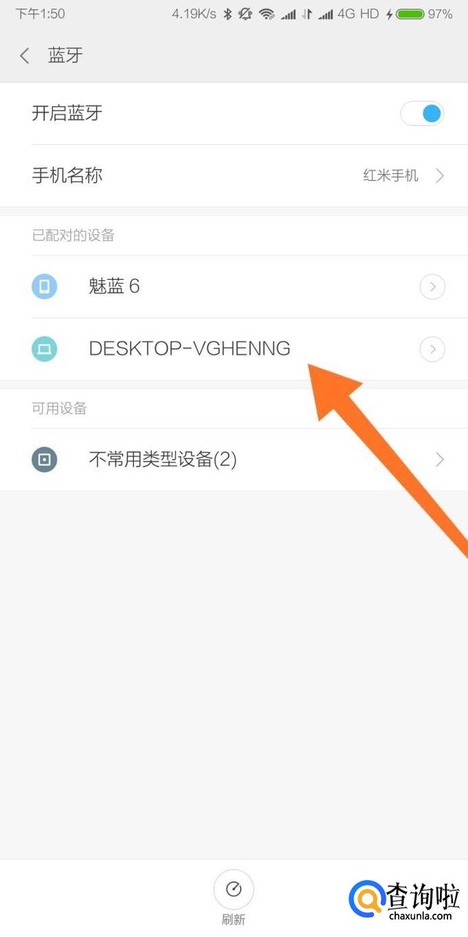 找到电脑蓝牙设备名称后,点击它的蓝牙设备名称,准备配对。