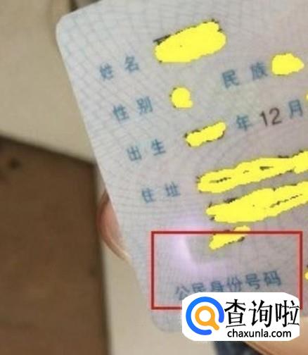 之后将光集中到身份证的背面,放到“公民身份证号码”字样的上方。