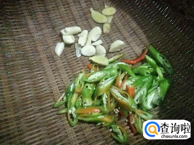 大蒜去皮洗净切片,青辣椒清水洗净后切片。