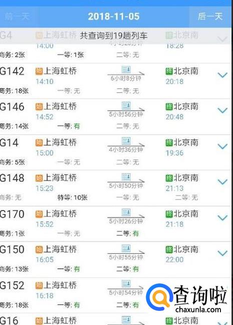 在列表中,找到G、D开头的车次,选择进入。