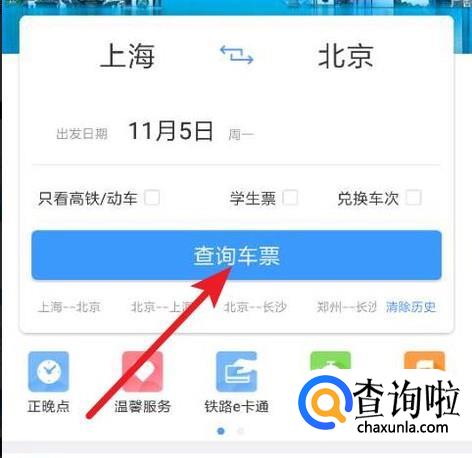 打开12306官方APP,选择一个旅程。