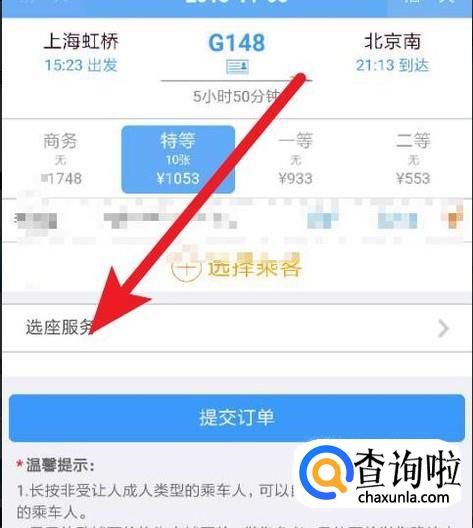 选择乘坐乘客后,下面有一个选座服务。