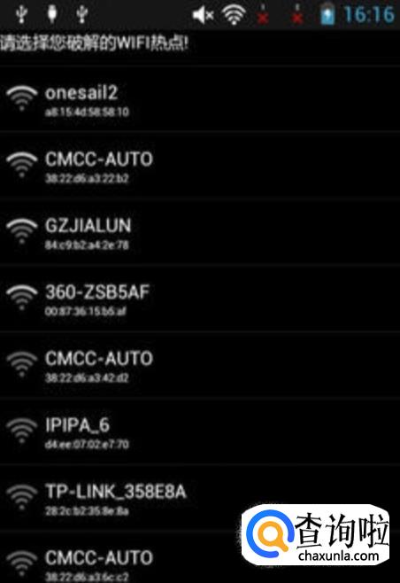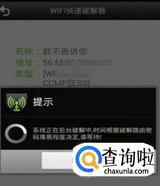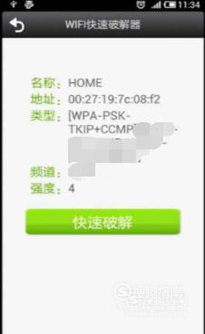 点击后程序会对WiFi进行密码破译,如果成功了,那我们会看见它显示的破解密码信息。